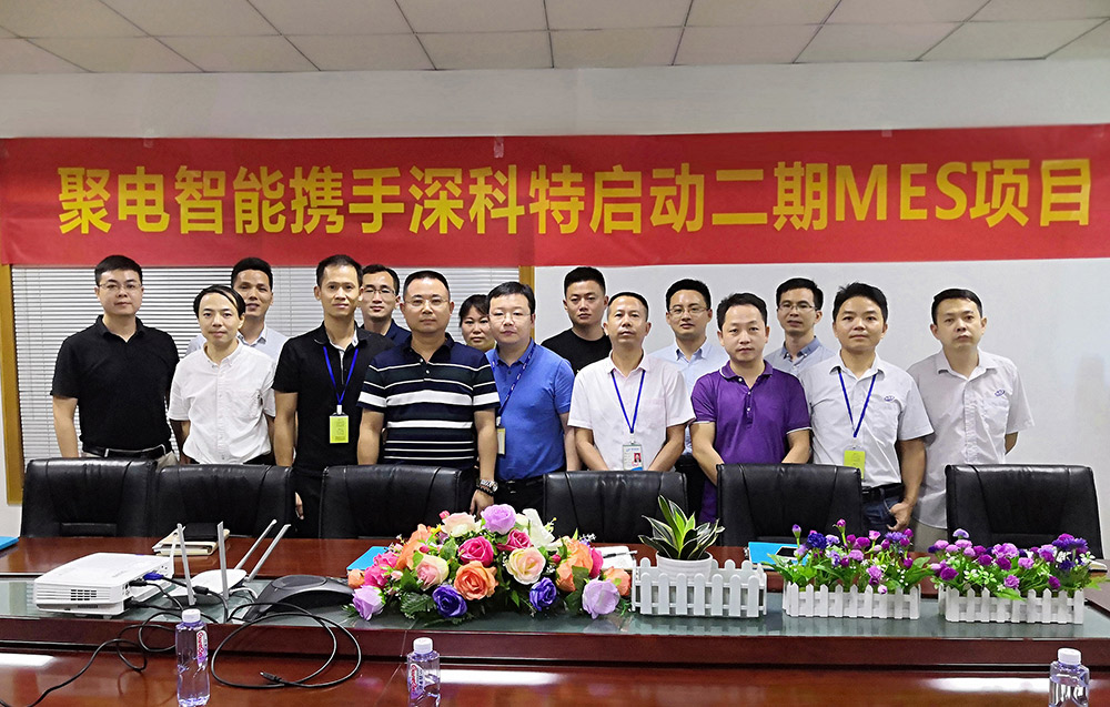? ? ? 為更好的輔助聚電進行工廠信息化戰略轉型,7月30日上午,深科特和聚電正式啟動mes系統二期項目,雙方高層及項目團隊共10余人出席會議。