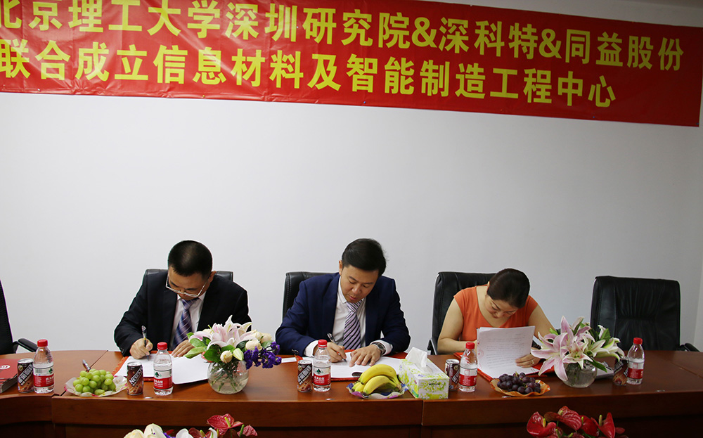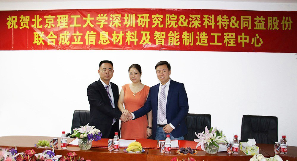? ? ? ?2016年5月11日上午,北京理工大學(xué)深圳研究院、深圳市同益實(shí)業(yè)股份有限公司、深圳市深科特信息技術(shù)有限公司戰(zhàn)略合作會(huì)議在同益股份總部舉行,北京理工大學(xué)深圳研究院院長(zhǎng)、同益股份行政總裁、深科特總經(jīng)理正式簽署了戰(zhàn)略合作協(xié)議。