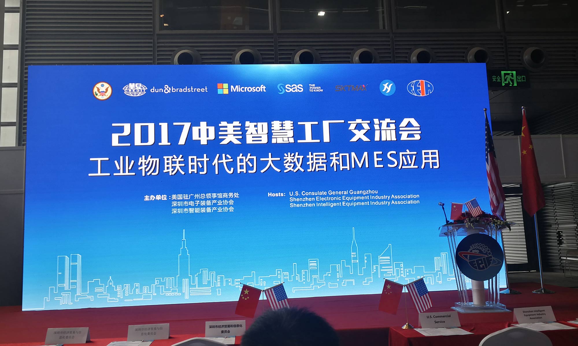 ? ? ?深科特同期還受邀參與由美國駐廣州總領(lǐng)事館、深圳市電子裝備產(chǎn)業(yè)協(xié)會、深圳市智能裝備產(chǎn)業(yè)協(xié)會主辦的中美智慧工廠交流會,由事業(yè)部總監(jiān)何云德分享以“移動終端如何掌控智能工廠”為主題的精彩內(nèi)容。
