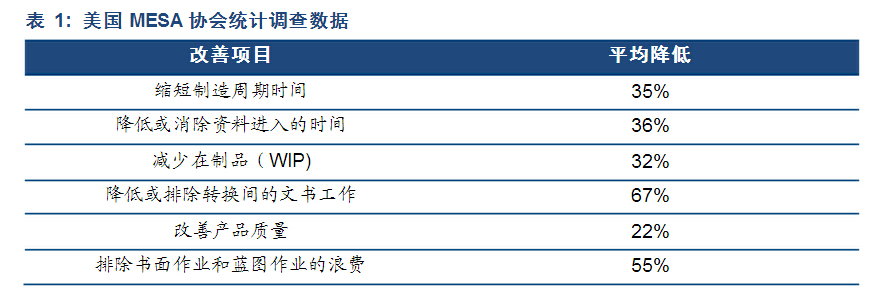MES系統可以提高產品質量和企業工作效率。它優化了企業的生產管理模式,強化過程管理和控制,實現精細化管理。同時減少了人工作業,實現數據共享,加強了各部門的協同辦公能力。根據美國MESA協會統計,使用MES系統后多個項目都得到了明顯改善,企業工作效率得到了大幅提高。